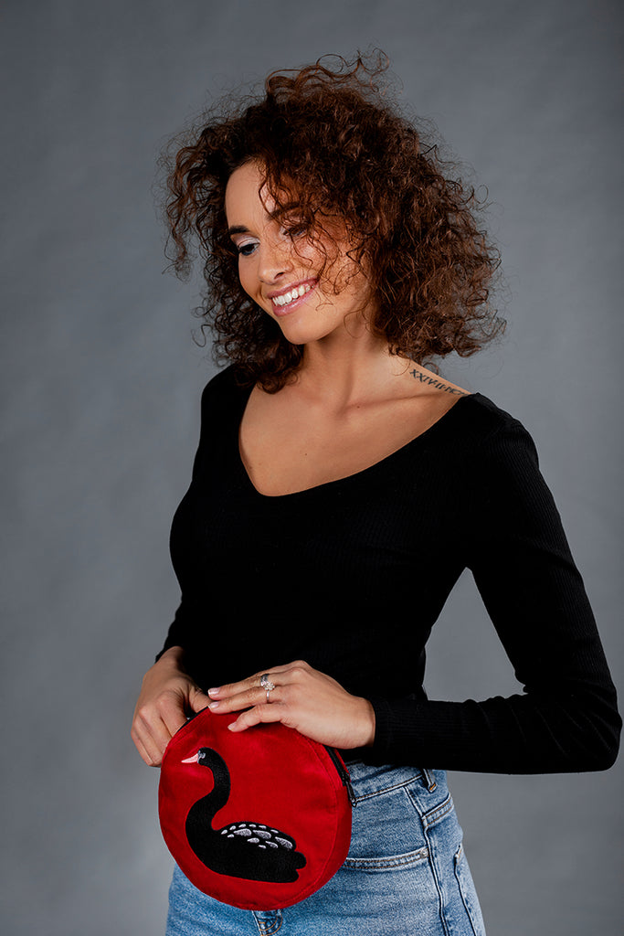 Round Belt Bag with Swan / Red