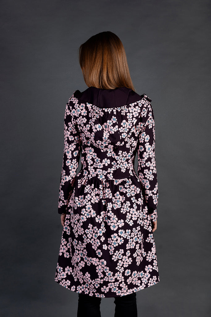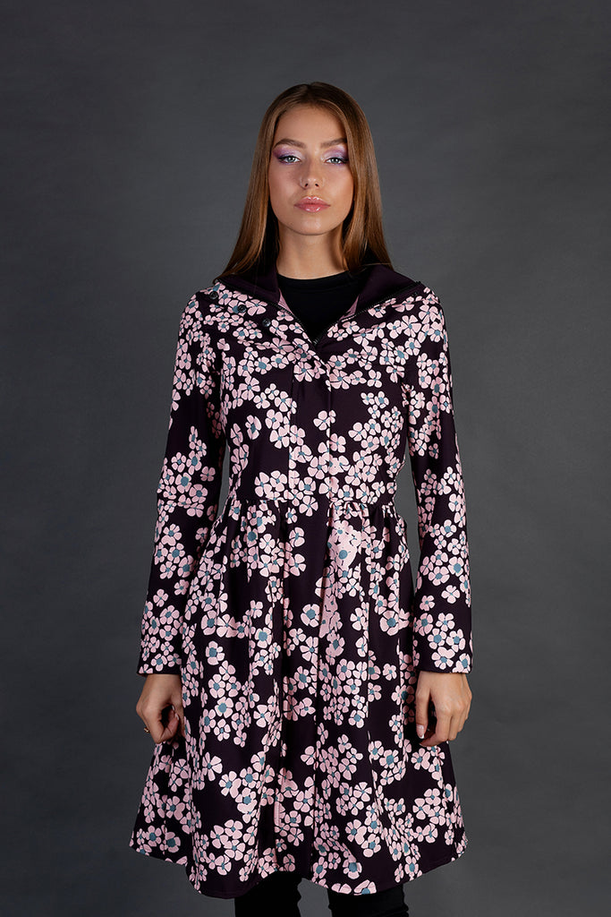 Softshell raincoat / Dark Burgundy / Pink Flowers