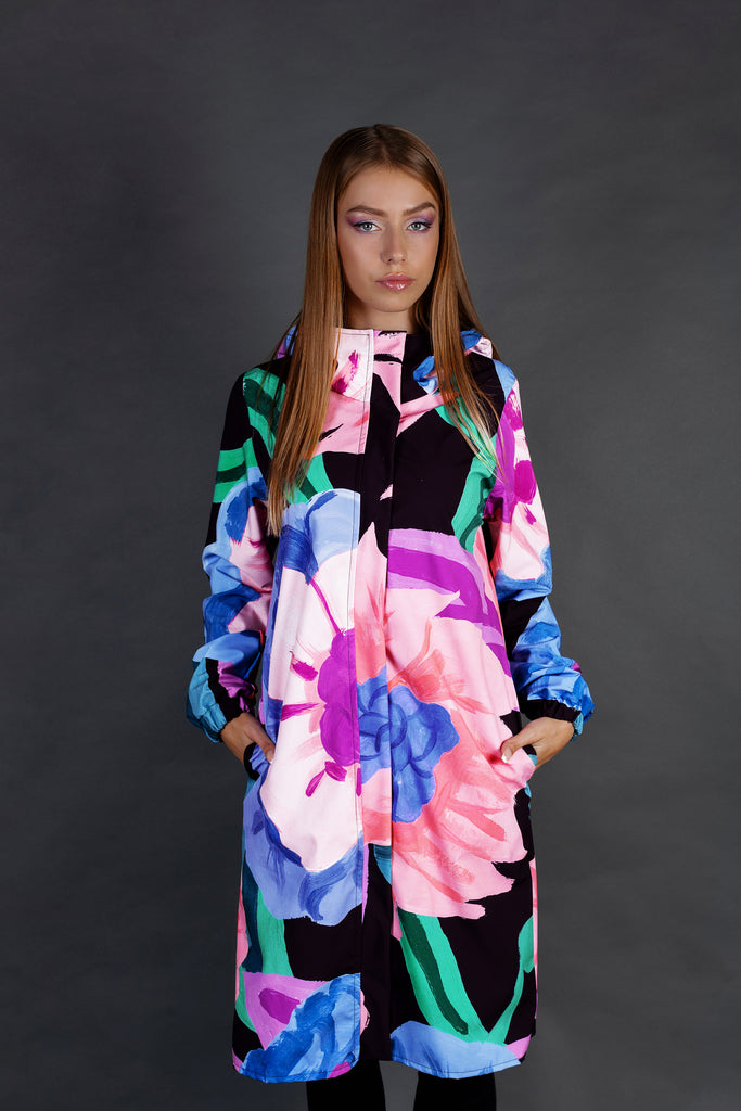 Meet the Bloomstorm Softshell Raincoat — a vibrant, oversized statement piece created from original Colorfall designer artwork. Every brushstroke in the print is painted by our in-house artists, bringing bold color and energy to your everyday style.