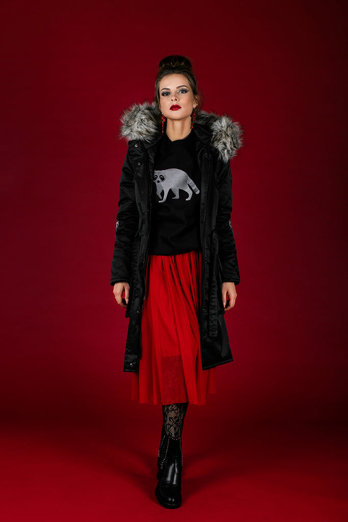 Mūsu ziemas mēteļi ir īpaši pielāgoti Baltijas reģiona mainīgajam laikam. Virsējais audums ir vēja aizturošs un ūdensizturīgs. Mētelis siltināts ar vilnas vatelīnu, kas sastepēts ar viskozes oderi. Vilna siltā ziemas dienā neļaus pārkarst, bet vēsā laikā labi sildīs. Roku galos iestrādāti kokvilnas ieadījumi. Mēteļa kažociņš ir nopogājams un ir no mākslīgā kažoka.